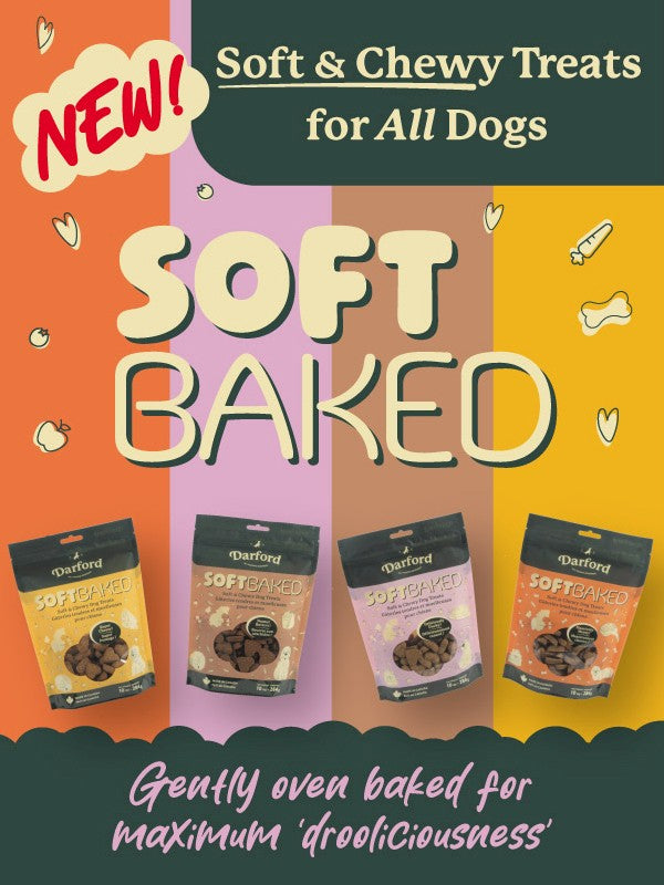 Soft & Chewy Treats for DogsOur newest treats are our chewiest yet. All Soft Baked treats are gently oven baked for maximum ‘drooliciousness’!